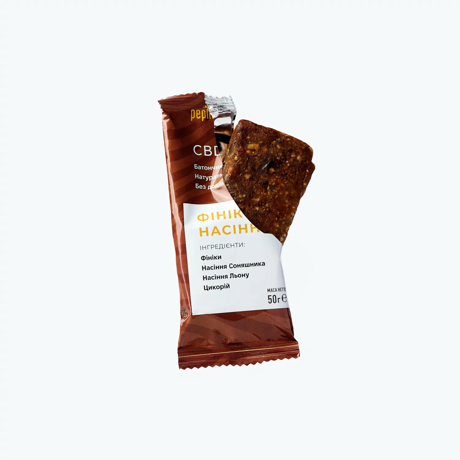 Батончик з CBD “Фініки та насіння”, 50 г. – натуральний перекус без рафінованого цукру, що заспокоює.