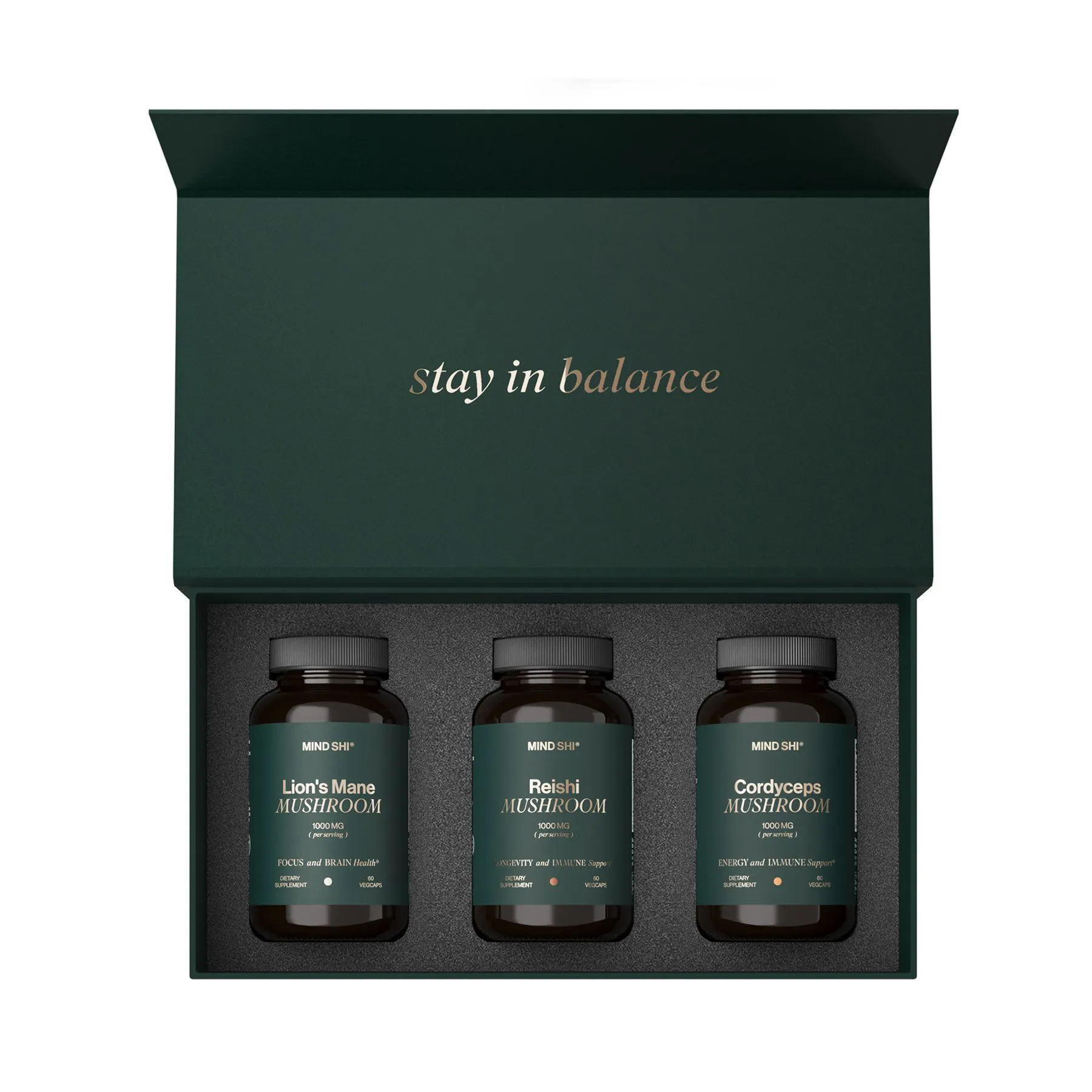 Не потрібно думати, які гриби купити та як їх комбінувати. Mind Shi вже зібрав для вас ідеальну тріаду для комплексної підтримки здоров’я.
