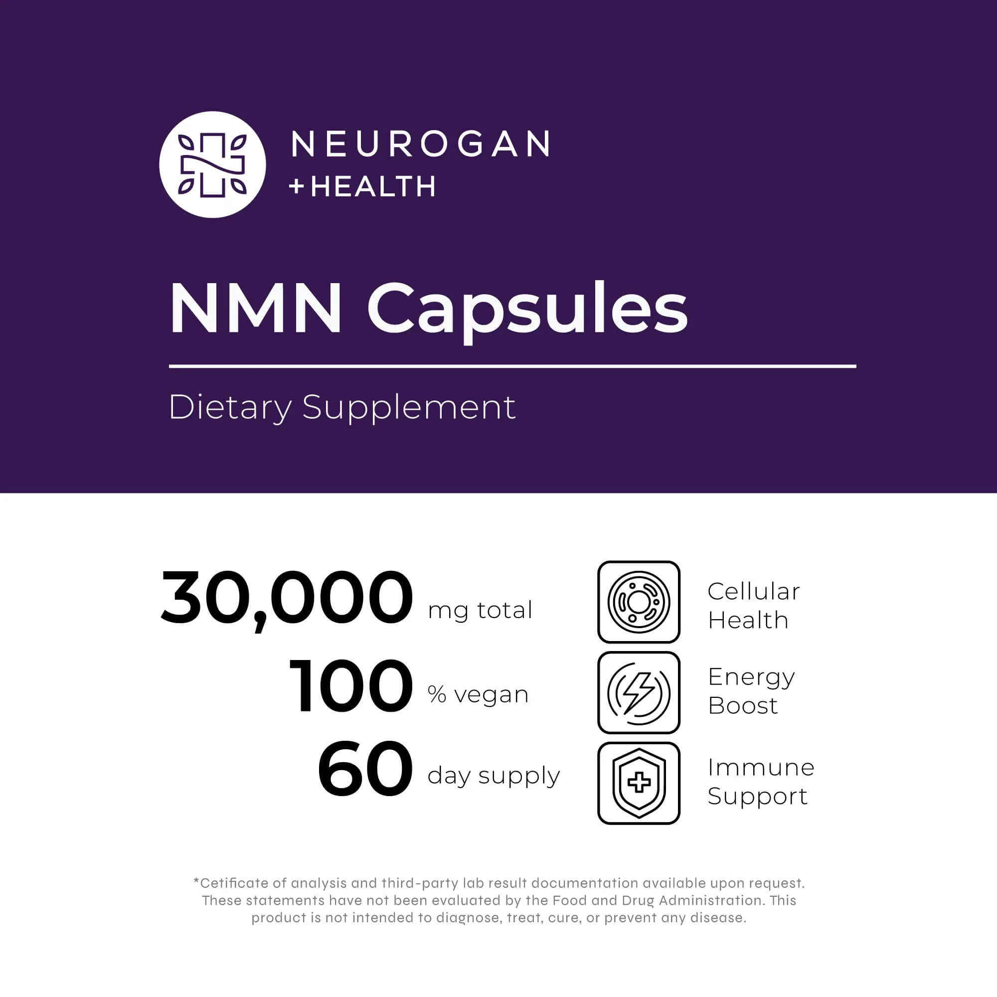 NMN капсули від Neurogan — це веганська дієтична добавка преміум-класу, яка містить 500 мг нікотинаміду мононуклеотиду (NMN) у кожній порції. NMN є попередником NAD+ — коензиму, який відіграє критичну роль у клітинних процесах, включаючи метаболізм енергії, репарацію ДНК, клітинну сигналізацію та експресію генів.